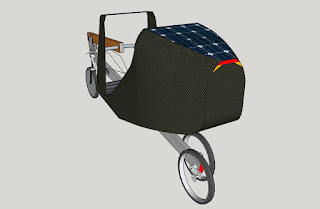 preprint for this year's conference article discusses fairings and solar panels on bikes and velomobiles. Anyway, although I use cad to make trikes, my presentation cad ability is not that great, and I was very glad that John lent his considerable skills to showing some possibilities for my trike design.