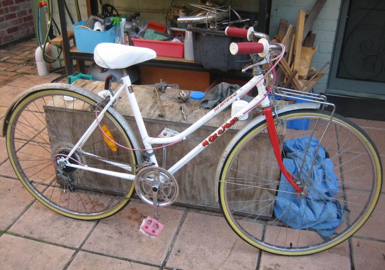 | Here's the bike after cleanup, its almost ready to go. Front rack is from a Peugeot NS22, and since this photo was taken I've added a load carrying crate. Will add a photo of this later. |
